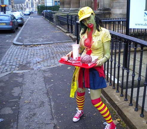Who would have known that all of those happy hamburger lovers that we grew up with would one day turn into something so dark and horrific? Just kidding. If you didn’t cry at the sight of Ronald McDonald as a child, you’re lying. Here are a few creepy burger-related ideas for all of you folks out there looking to spook someone this Halloween. Whether you’re a zombie McDonald’s employee or just the good ‘ol creepy Burger King, we hope you enjoy scaring the neighborhood kids and be sure to fill this weekend with lots of spooks, candy, and most importantly, cheeseburgers!