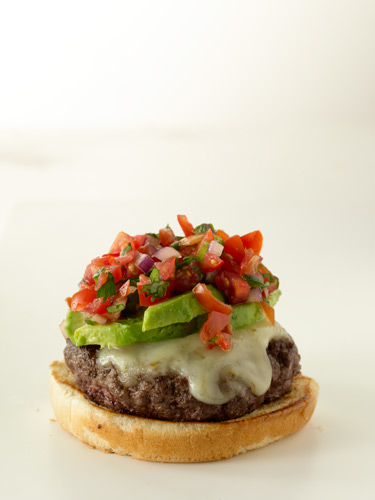 5. Put burgers on rolls and top with chipotle mayonnaise, queso fresco, cilantro, and avocado slices.